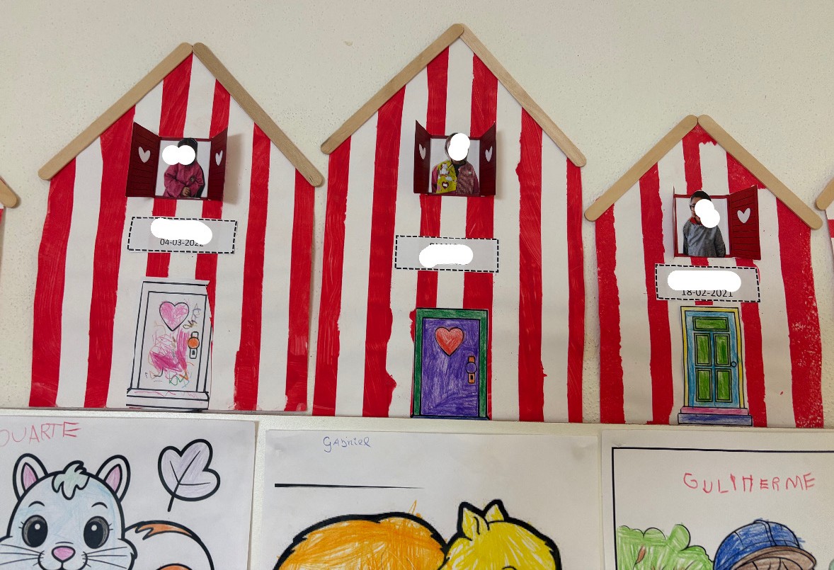 Um dos destaques deste mês foi a conversa sobre as famosas casinhas da Costa Nova, símbolo da região e parte da história de muitas das crianças. Através da expressão plástica, cada criança teve oportunidade de falar sobre o seu próprio ambiente familiar e cultural, fortalecendo a autoestima, o sentido de pertença e o respeito pela diversidade.